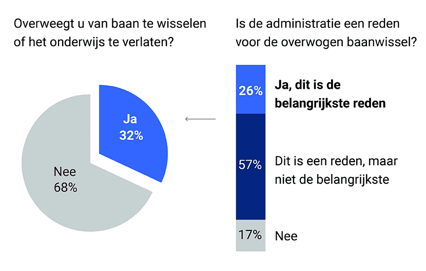 Leraren besteden elke week 6 tot 8 uur per week aan administratie. Een derde van de leraren overweegt een andere baan te zoeken. ...