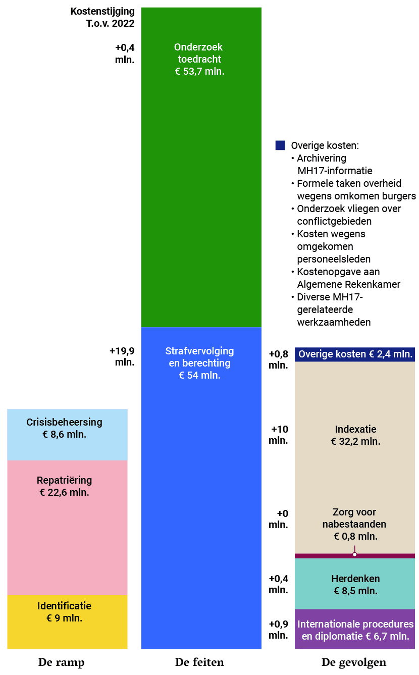 Op verzoek van het kabinet houdt de Algemene Rekenkamer bij hoeveel kosten de Nederlandse overheid maakt sinds vlucht MH17 met ...
